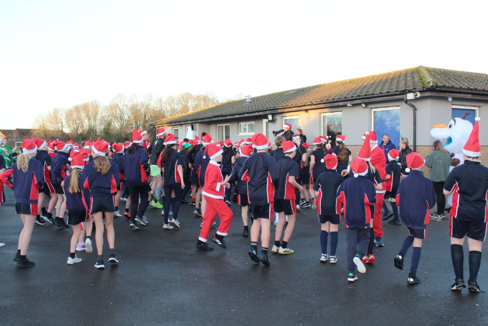 On Friday the 12th December around 150 Santas took part in the annual fun and festive 2k event. Raising money for Friends of SVS (FoSV). A festive warm-up was provided by the PE department before staff dressed as The Grinch, Santa, Elves, Rudolph, a Christmas tree and a gold gift-wrapped present set off alongside pupils to complete the route.